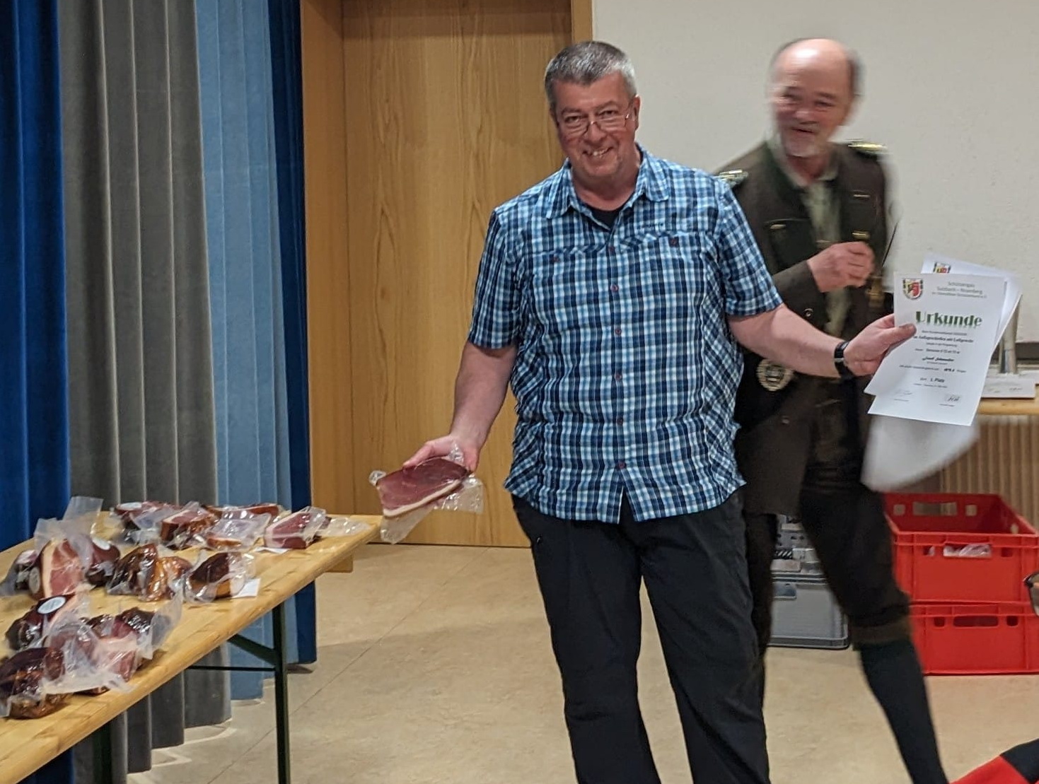 Sepp Schmaußer (links) und Werner Wendl (rechts) überreichten souverän die Schinken an die erfolgreichen Gewinner.
